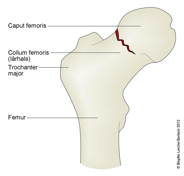 Brudd nær leddhodet til lårbeinet kan medføre at blodforsyningen til leddhodet skades. På sikt vil det føre til at leddhodet smuldrer opp (caputnekrose), noe som gjør det umulig å gå på dette beinet. Ut fra bruddtypen kan ortopeden forutsi en slik utvikling. Ortopeden vil i slike tilfeller fjerne leddhodet og deler av lårhalsen og sette inn en protese, en kunstig lårhals og leddhode i lettmetall.