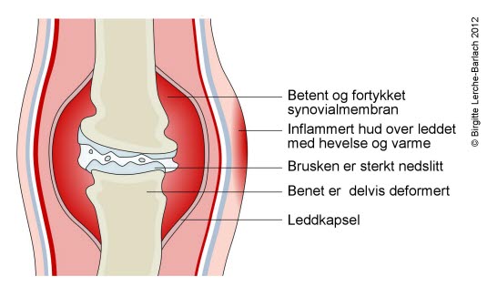 Brusken er helt borte. Leddhodet er deformert. Ingen aktiv betennelse av synovialhinnenPrognose